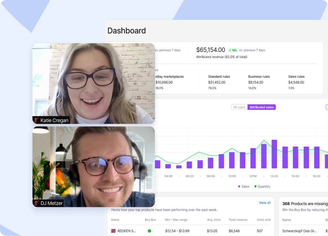 - Get help setting up advanced repricing features, add more channels and help take your business to the next level
